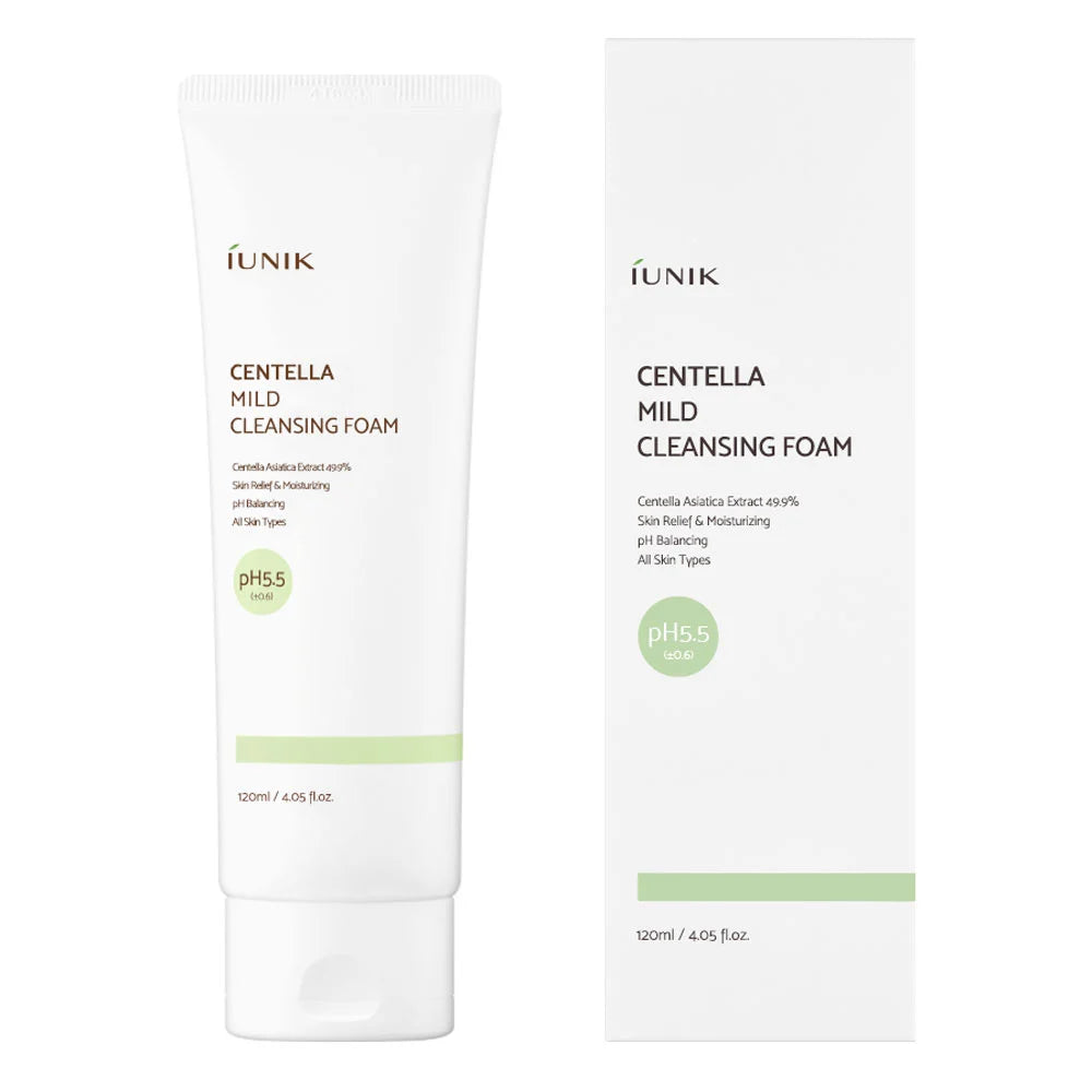 Zuiver en kalmeer de huid met iUNIK Centella Mild Cleansing Foam. De milde reinigingsschuim is geschikt voor elk huidtype. De pH van 5,5 maakt het aangenaam voor de gevoelige huid en balanceert de vochtbarrière tijdens het reinigen. Vol met maar liefst 29,9% cica-extract wat de huid kalmeert en roodheid minimaliseert, terwijl 0,2% salicylzuur op milde wijze dode huidcellen en overtollig talg verwijdert. De reiniger houdt de poriën schoon, voorkomt toekomstige puistjes, en hydrateert daarnaast ook de droge huid die last heeft van schilfertjes.